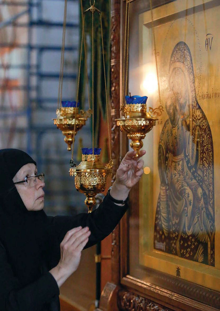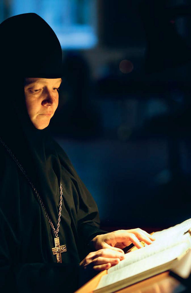 Но главный монашеский труд – это молитва. Подъем в 6.00 утра, до 7.00 все читают правило, потом до 8.00 перерыв. Игумения Иустина объясняет, что к семи в храм приезжают паломники, становится шумно. В 8.00 литургия, на которой присутствуют все сестры, свободные от послушаний в трапезной и просфорне.