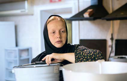 Помогает монахине Анастасии местная жительница, прихожанка монастыря. Игумения объясняет, что могла бы дать сестре в помощницы кого-нибудь из насельниц, но поскольку в Кадоме, как и везде в русской провинции, трудно с работой, и эта прихожанка – многодетная мать – осталась без работы, они решили поддержать женщину, платят ей зарплату.