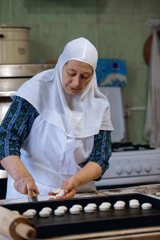 Просфорами сестра Елизавета вместе с еще одной послушницей обеспечивают не только монастырь, но и ближайшие приходские храмы. Выпекание просфор – работа творческая, художественное образование Елизавете и в обители пригодилось.