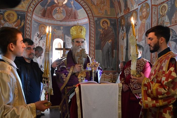 Архиепископ цетињски и Митрополит црногорско-приморски г. Амфилохије служио је 2. априла 2017. године са свештенством свету службу Божју у манастиру Космач на Скадарском језеру.