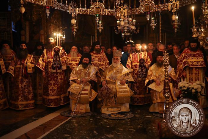 На сам день праздника Благовещения праздничное богослужение в русской святогорской обители на Афоне возглавили постоянный член Священного Синода РПЦ, глава Среднеазиатского митрополичьего округа митрополит Ташкентский и Узбекистанский Викентий (Морарь), епископ Львовский и Галицкий Филарет (Кучеров) и епископ Бородянский Варсонофий (Столяр), викарий Киевской епархии УПЦ.