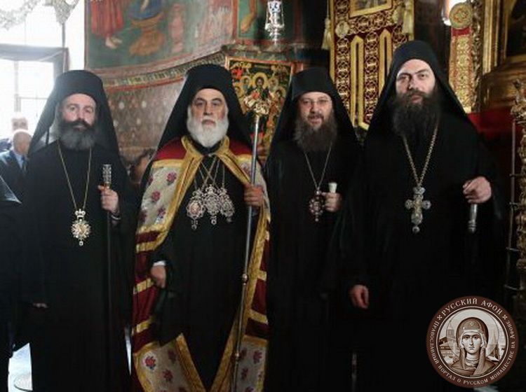 Преосвященным архиереям сослужили игумен Пантелеимонова монастыря архимандрит Евлогий (Иванов) с духовенством русской святогорской обители. Также в праздничном богослужении приняло участие многочисленные паломники из России, Украины, Узбекистана, Греции и других стран.