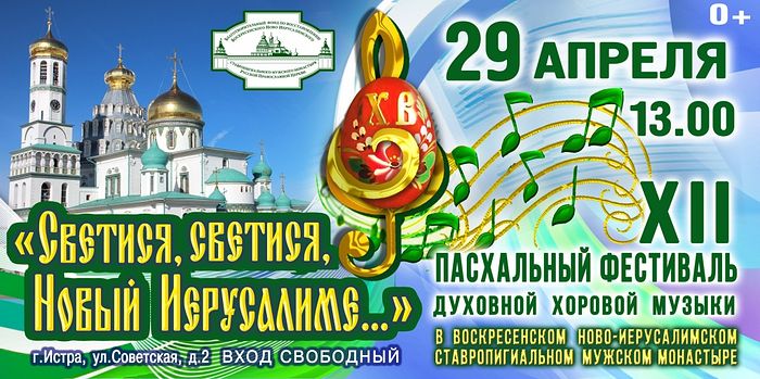 Пасхальный фестиваль пройдет 29 апреля в Ново-Иерусалимском монастыре. Праздник духовной хоровой музыки «Светися, светися, Новый Иерусалиме…» состоится уже двенадцатый раз, сообщили порталу «Приходы» организаторы.