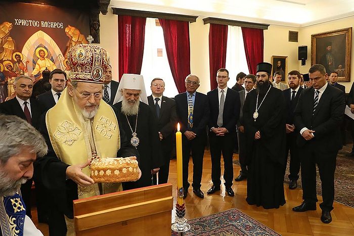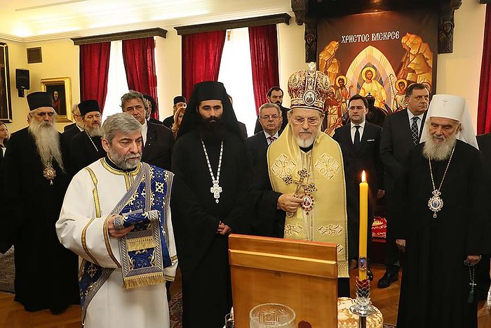 Славском обреду присуствовали су Преосвећена господа Епископи бачки Иринеј, шумадијски Јован и толички Арсеније, председник Републике Српске г. Милорад Додик, г. Никола Селаковић, директор Управе за сарадњу са традиционалним Црквама и верским заједицама др Милета Радојевић, амбасадори Руске Федерације, Белорусије и Грчке - г. Александар Чепурин, г. Владимир Чушев и г. Елиас Елиадис, настојатељ Светоархангелског манастира у Ковиљу архимадрит Исихије (Рогић), као и многобројни угледни представници политичког, привредног и културног живота српске престонице.