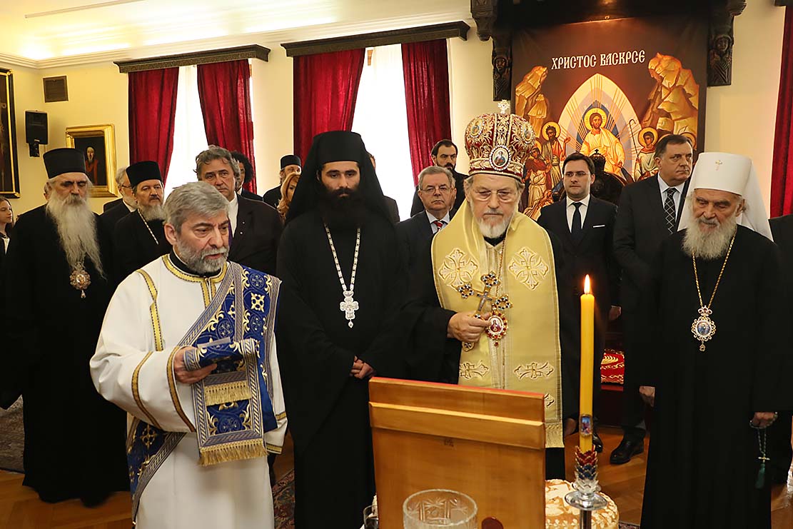 Његова Светост Патријарх српски г. Иринеј примио је 8. априла 2017. године, поводом Лазареве суботе - крсне славе Његове Светости, после литругијског сабрања у Саборном храму, високе званице у Патријаршијском двору у Београду, где је свечани чин ломљења славског колача обавио Преосвећени Епископ шабачки г. Лаврентије.