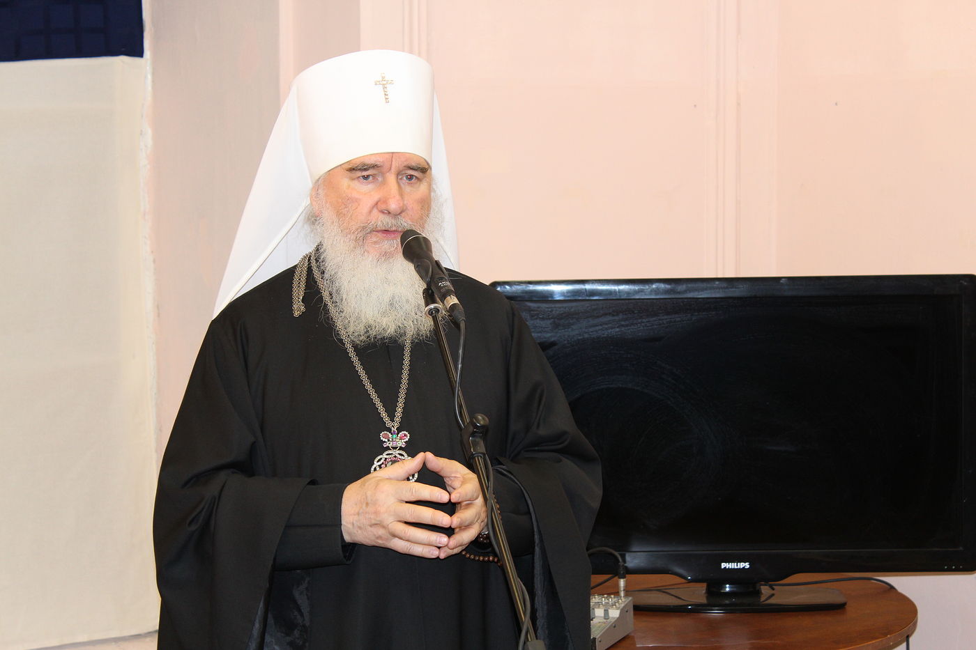 Following His Eminence’s words, the organizers of the exhibition, Hero of Russia and chairman of the Ryazan regional branch of the Russian Geographical Society Mihail Georgievich Malakhov, and director of the Ryazan Museum of Travelers A. N. Kapitanov spoke about their years of research into unknown pages of St. Herman’s biography, which was further expounded upon by museum deputy director on scientific works S. V. Yurchenko, who gave a tour of the photo exhibition, with many beautiful photos of places connected with St. Herman’s life, including Valaam and Spruce Island, and Kadom, where St. Herman was born, according to the latest research.
