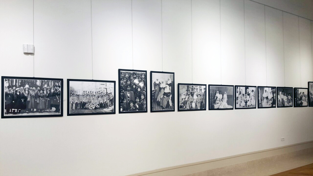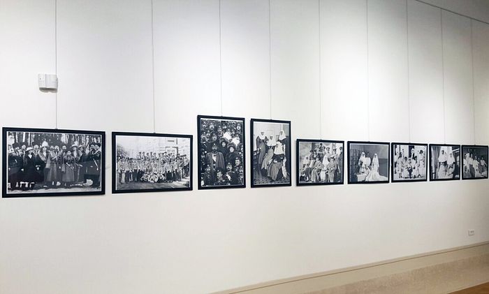 Выставку составляют черно-белые фотографии из исторических архивов и личных альбомов семьи Романовых.
