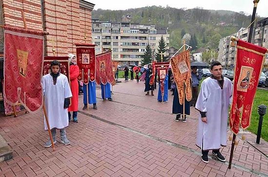 Он је казао да је поводом празника над празницима и славља над слављима -Васкрсења Христовог,а поводом славе прибојског Саборног храма, као што је и раније уобичајено,свештена литија прошла кроз град Прибој.