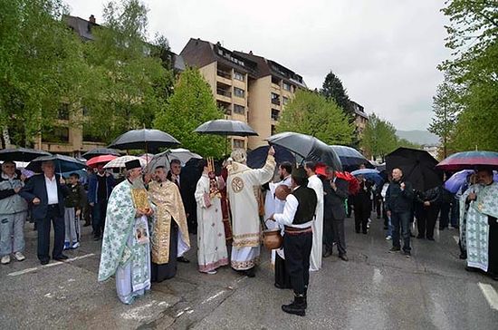 По одслуженој вечерњој служби, услиједила је свечана свенародна литија кроз град у којој је, упркос јакој киши, учествовао велики број вјерујућег народа.