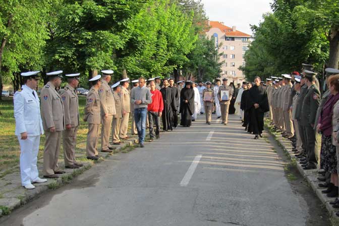 Изградња богослужбеног простора у касарни „Александар Берић“ започета је током протекле године заједничким снагама припадника Речне флотиле и њених бројних пријатеља. У знак захвалности за ангажовање током изградње и опремања богослужбеног простора епископ Бачки Иринеј уручио је Архијерејске Грамате Признања Речној флотили, Граду Новом Саду и Академији Српске православне цркве за уметност и консервацију.