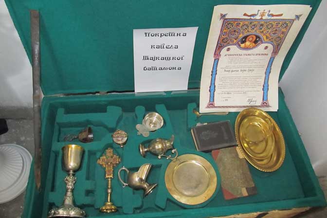 Значајно место у новоосвећеном храму припало је иисторијском артефакту, ковчегу са Покретном капелом Шајкашког батаљона чије традиције настављају припадници Речне флотиле.