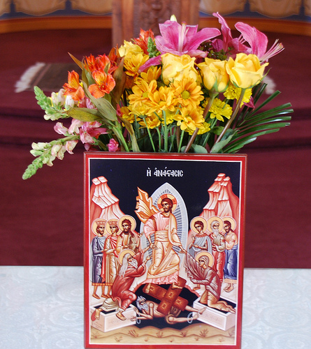 “Hell rules the race of mortal humans, but not eternally; for when You were placed in the grave, O powerful One, You tore asunder the bars of death by Your life-creating hand and proclaimed true deliverance to those sleeping there from the ages, since You, O Savior, have become the first-born of the dead.” (Pascha Nocturnes)