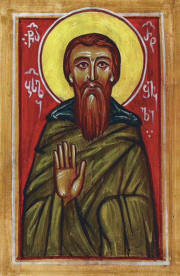 Saint Basil Ratishvili, one of the most prominent figures of the 13th-century Church, was the uncle of Catholicos Ekvtime III. He labored with the other Georgian fathers at the Iveron Monastery on Mt. Athos. Endowed with the gift of prophecy, Saint Basil beheld a vision in which the Most Holy Theotokos called upon him to censure King Demetre’s impious rule. (This is actually Saint Demetre the Devoted, who in his youth lived profligately but later laid down his life for his nation.)