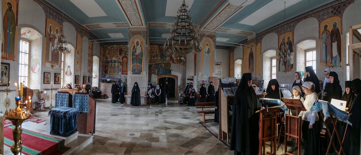 С росписями у нас вышла интересная история. Пока не требовались тонкие профессиональные работы – рука мастера, храм расписывали, можно сказать, все от мала до велика. И сестры обители, и прихожане, и даже малыши из детского сада, который монастырь полностью содержит. Школьники тоже частенько приходили. Кто вензелечки аккуратно делал, кто крестики – в общем, детской росписи в храме немало. Два года назад монахиня Параскева, по благословению отца Петра преподававшая в сельской школе рисование, была вынуждена уйти оттуда, чтобы всецело заняться реставрацией Никольского храма. Отец Петр благословил ее на это... К слову, по ее проекту в деревянной Успенской церкви был сделан резной иконостас. А Никольский храм – это такая махина! Три больших придела! Батюшка скорбел, что храм расписывается медленно. Но в последнее время в помощь матери Параскеве потихоньку стали прибывать добровольцы из Москвы. Сегодня в числе наших первоочередных задач – подготовка Никольского храма к визиту Святейшего Патриарха Кирилла. Мы полагали, что он состоится 22 мая, в день памяти святителя Николая Чудотворца, но узнали, что визит намечен на 21 мая. И поняли, что эта дата для нас не случайна. Отец Петр не раз говорил сестрам: молиться о возрождении и благоукрашении храмов нужно святому апостолу и евангелисту Иоанну Богослову. Несколько последних лет мы молились этому великому святому, прося помощи в завершении работ. И вот ждем Святейшего Патриарха на день памяти любимого ученика Спасителя!