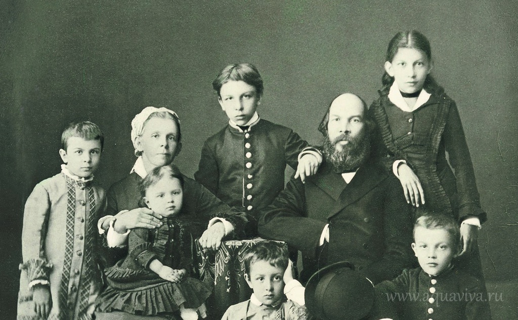 Семья Ульяновых. Стоят (слева направо): Ольга, Александр, Анна. Сидят (слева направо): Мария Александровна c дочерью Марией на руках, Дмитрий, Илья Николаевич, Владимир. 1879 год Истина в «Тишине»