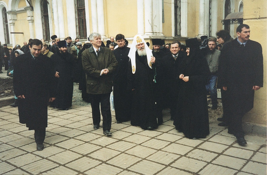 13 октября 1996 года в 17.00 Святейший Патриарх Московский и всея Руси Алексий II впервые отслужил молебен в Покровской обители. В присутствии телевидения и множества журналистов Первосвятитель обратился к властям и народу. Вскоре после этого вышло Постановление о передаче монастырю территории и храмов, и уже через месяц нам передали все здания, а в начале 1997 года – и землю. Однако арендаторы покинули здания только в 1998 году.