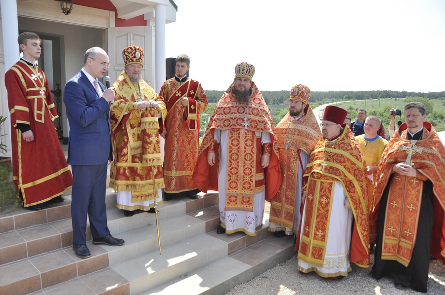 По окончании богослужения владыка Лазарь обратился ко всем с напутственным словом и вручил благодарственные Архиерейские грамоты активным участникам строительства, в том числе Андрею Кондрашову, командующему 4-ой армией генерал-лейтенанту Виктору Севастьянову, командиру соединения войск ПВО Крыма генерал-майору Юрию Подоплелову.