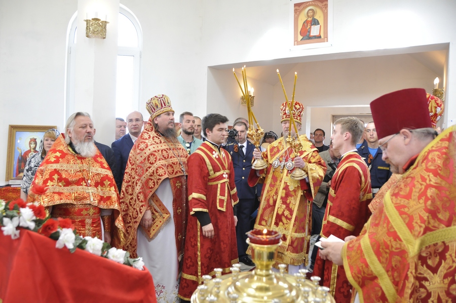 Чин освящения храма и служение Божественной литургии возглавил Митрополит Симферопольский и Крымский Лазарь. Владыке сослужили благочинный Севастопольского округа протоиерей Сергий Халюта, руководитель военного отдела Симферопольской и Крымской епархии протоиерей Дмитрий Кротков, настоятель храма святых воинов Александра Пересвета и Андрея Осляби Радонежских иерей Александр Рева и духовенство Севастопольского благочиния.