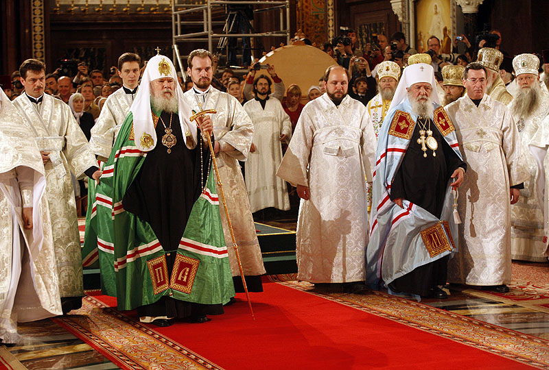 27 мая, после обеда с Патриархом Алексием, Святейший Патриарх, Владыка Лавр, будущий Патриарх Кирилл и архиепископ Марк были приняты Президентом России В.В. Путиным в его резиденции в Ново-Огареве. Я имел счастье присутствовать на официальной части этой встречи. В своем приветствии Президент России отметил: «Я очень рад, что процесс сближения двух частей Русского Православия проходит позитивно. Не буду говорить о двух Церквах, ведь в сознании нашего народа Русская Церковь едина. Мне очень приятно отметить, что после нашей встречи в Нью-Йорке те священнослужители, которые отстаивают, защищают и пропагандируют Православие за рубежами России, посетили Российскую Федерацию и увидели своими глазами духовное возрождение нашего Отечества. Тем не менее государство ни при каких обстоятельствах не намерено в какой-либо форме вмешиваться в дела Церкви. Мы не собираемся и не можем влиять на процессы, происходящие в Русской Православной Церкви, но мы готовы всемерно содействовать созданию условий для воссоздания единства Русского Православия. Для нас процесс сближения двух частей Русской Православной Церкви значит большее, нежели просто решение внутрицерковной проблемы. Это символ возрождения России и единства русского народа».