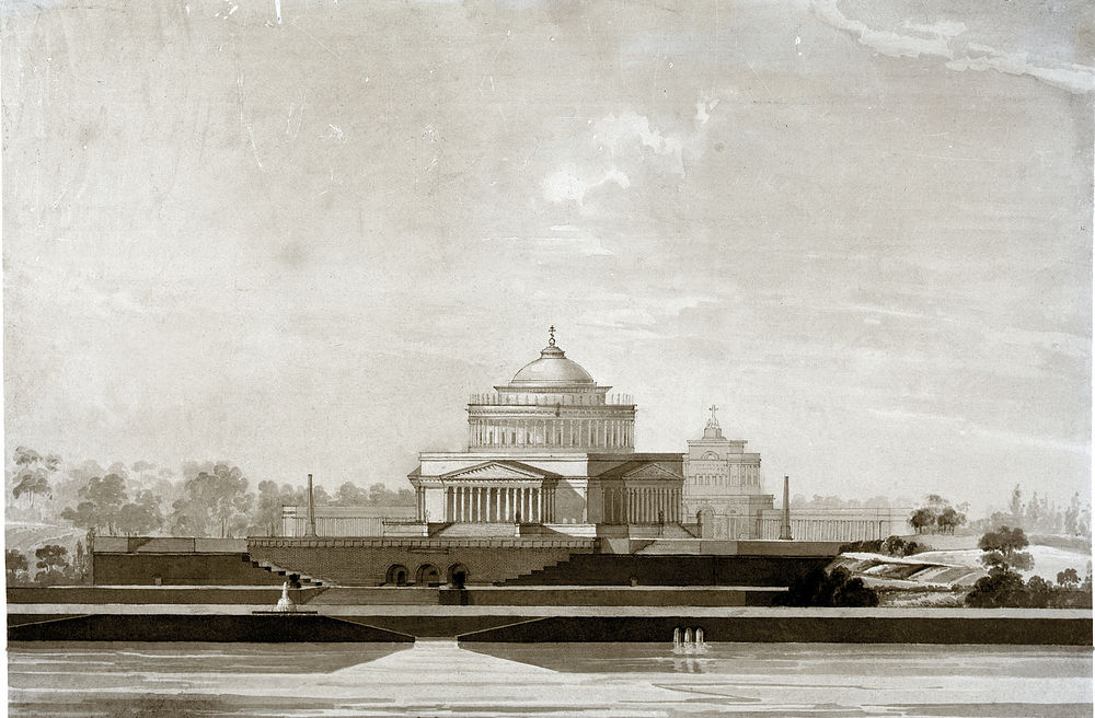 Единственным масштабным храмостроительным начинанием царствования Павла I стал собор в честь Казанской иконы Божией Матери в Петербурге: в 1800 году получил одобрение проект молодого талантливого архитектора А.Н. Воронихина[33].