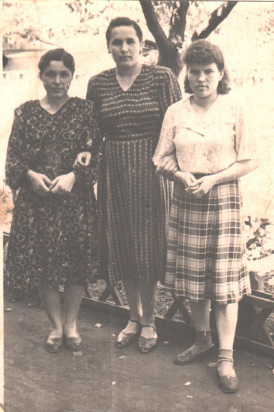 Меня взяли работать в колхоз. Проработала год, палочку написали мне, мешок пшеницы дали — и всё. А нас трое. Отец говорит: всё, я поеду к куму. А у него кум работал в Углегорске — чтобы его не раскулачили, он продал всё и уехал.