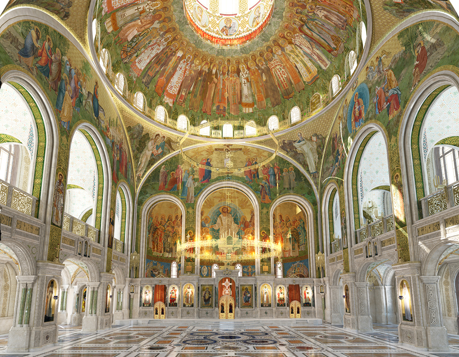 И ако смо добили спољашњи изглед са основом уписаног крста, изнутра је то византијска базилика. Такви храмови се или скоро никад не граде или ми једноставно нисмо на њих наилазили. Добили смо такав спој стилова и архитектонских облика.