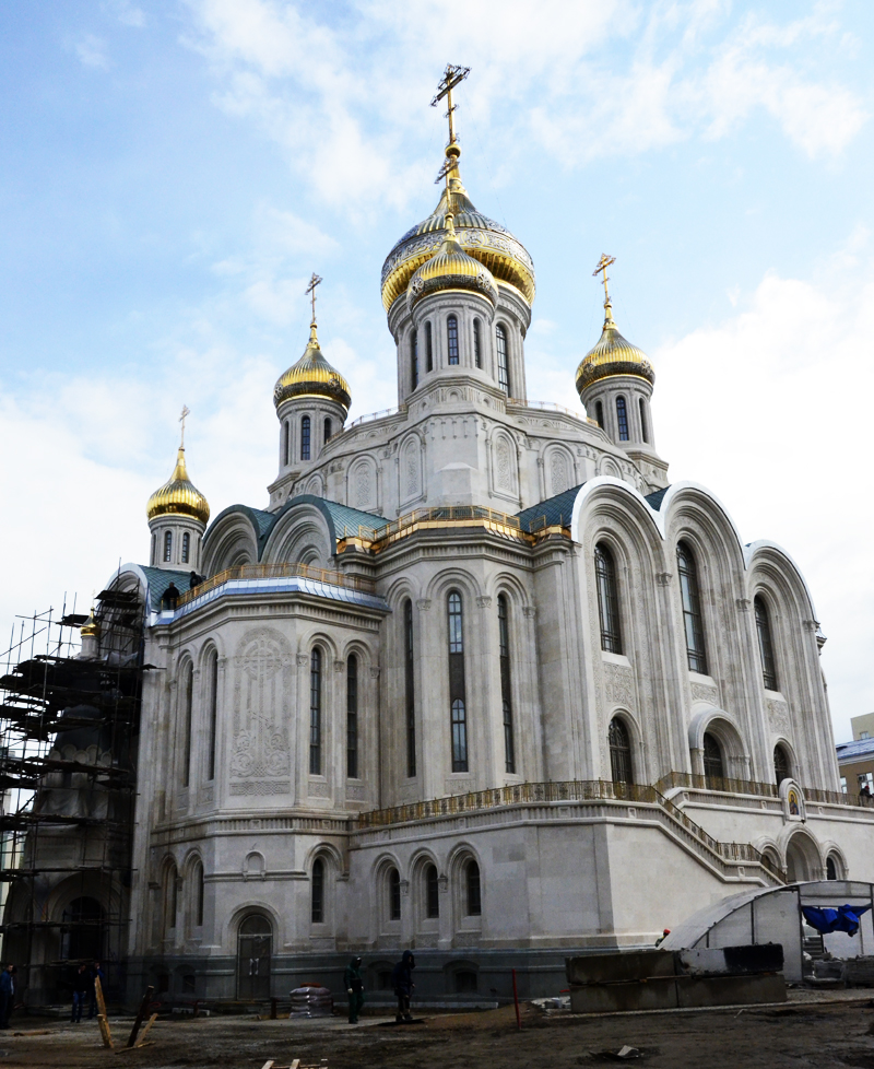 — Фасада је од природног камена из владимирског краја, од којег је саграђен, на пример и храм Покрова на Нерли, Успенски сабор. И гранит је наш, руски. Одлучили смо се за класику зато што то одмах оплемењује храм. За годину дана ће људи имати осећај да се увек ту налазио.