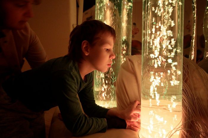 Уютнее всего в сенсорной комнате: здесь светятся разноцветные огни, играет тихая музыка, на полу лежат мягкие пуфы. Но это не только среда для релаксации, но и важный инструмент работы с самыми сложными детьми. Убедить ребенка поднять руку или ногу, повернуть голову бывает непросто, если это ребенок с тяжелой формой ДЦП и сопутствующим нарушением интеллекта. Он может не понимать, что от него хотят и зачем это нужно. Другое дело – повернуться, чтобы увидеть разноцветные огоньки или нажать на большую красную кнопку, после чего произойдет что-то яркое и интересное.