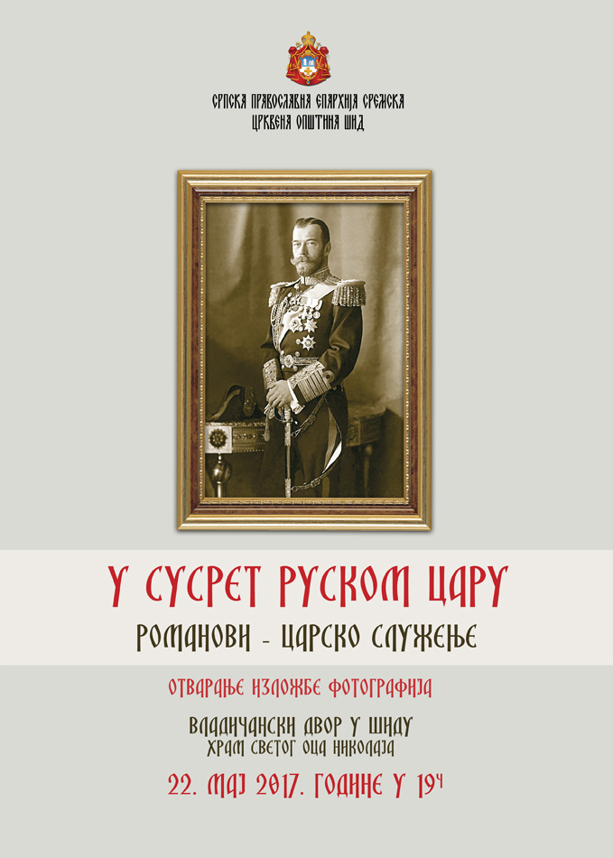 Изложба фотографија „У сусрет Руском Цару. Романови - царско служење“ посвећена је последњем Руском императору Николају II и његовој породици. Пројекат је настао са жељом и циљем да се српској публици приближи лик и дело чланова последње династије. Поред тога, да се пробуди сећање на породицу Романов, ближе упозна са животом и жртвеним служењем породице последњег Руског цара. При томе су се организатори потрудили да фотоматеријал одаберу полазећи од жеље да пре свега прикажу лепоту породице Романов, њихов свакодневни живот и служење за добробит Отаџбине и свог народа.