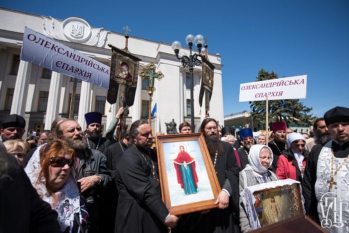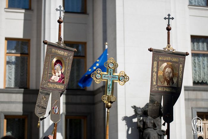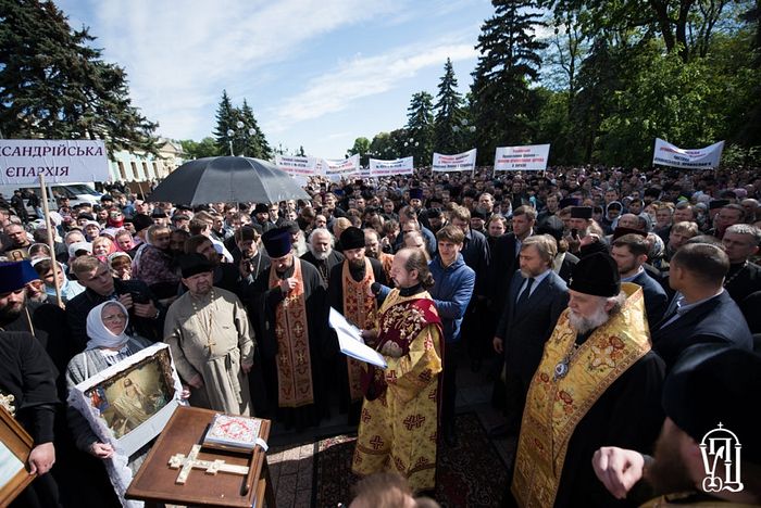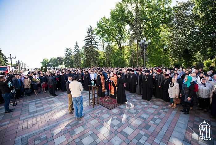 Православные верующие молились в этот день, начиная с 8 утра и до окончания пленарного заседания Верховной Рады Украины.