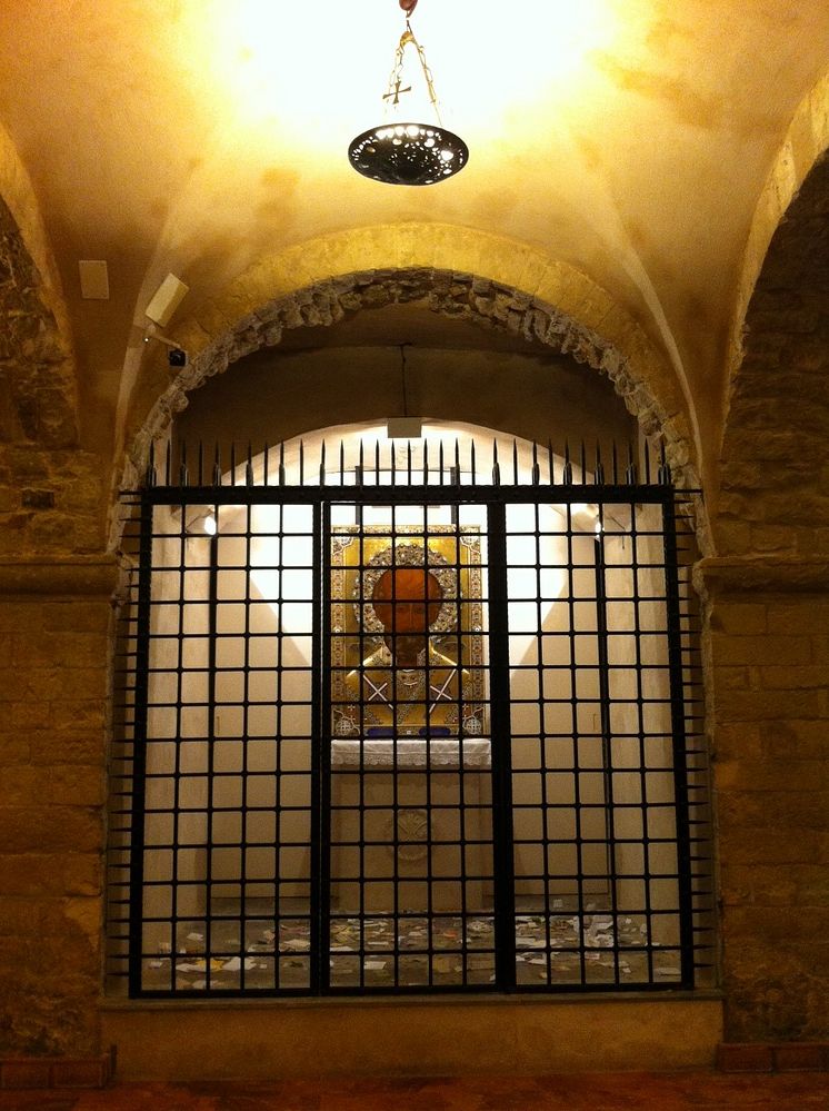 Служба в крипте, и правда, долгая – вместо привычных двух продолжается часа три-четыре. Это и за счет количества причастников, и совершенно другого темпоритма. Даже вне праздников молящихся много. По небольшому проходу вдоль задней стены одна группа туристов постоянно сменяет другую: испанцы, французы, итальянцы. Кто-то просто проходит, кто-то останавливается, присаживается, пытается вникнуть в суть происходящего, пока экскурсовод с табличкой не напомнит о том, что уже пора. В заключительный день нашего паломничества одна итальянская пара усиленно расспрашивала меня о службе. Как сказал потом отец Андрей, «на юге Италии народ очень клерикальный и по-своему благочестивый. Они хорошо относятся к православным священникам, уважают их. Католики часто просят благословения, помолиться о них».