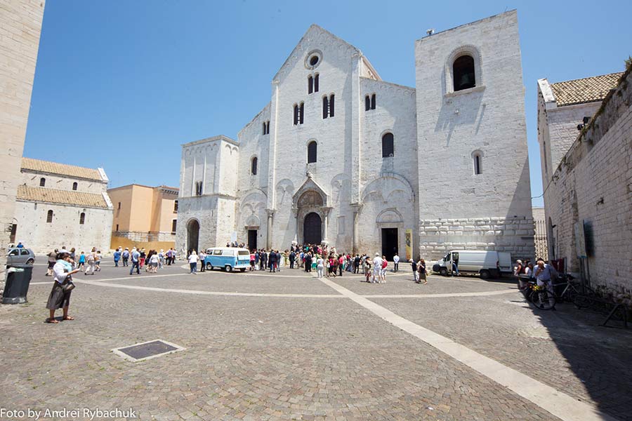 Три с небольшим часа на самолете из Москвы в Рим, затем еще час до Бари, и вот он, долгожданный град святителя Николая. Светлые улочки залиты утренним солнцем, над ними витает аромат пиний, кофе и свежевыстиранного белья – предмет особой гордости местных хозяек. От площади дель Феррарезе вверх на крепостную стену, по одну сторону которой виден Старый город, по другую – лазурное море. Несколько поворотов и спуск по ступенькам к базилике. Можно пройти и по набережной или напрямик через старые кварталы, но мне больше полюбился именно этот путь.