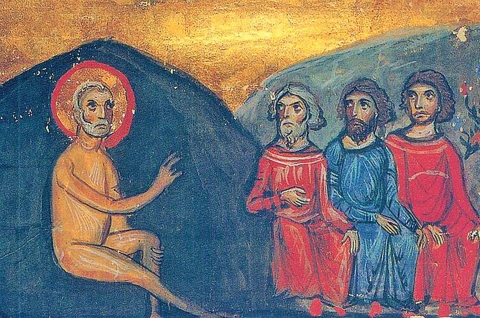 После этого сатана поразил все тело Иова жестокой проказой от ступней ног его до темени. Но Иов остался верен Богу. Пришли к нему друзья. Семь дней они молчали, а потом стали утешать его. Они говорили Иову, что Бог всегда праведен и наказывает грешников. Трое друзей призывали Иова покаяться в тайном грехе, из-за которого страдает. Они руководствовались общепринятым ветхозаветным представлением, что страдания посылаются за грехи. Их речи усиливали душевную боль Иова. Четвертый собеседник, Елиуй, хранивший молчание, говорит о наказании за грех с большей тонкостью. В его речах можно увидеть новые грани богословских суждений о Божественной справедливости. Он утверждает, что человек может быть неправ перед Богом не отдельным каким-нибудь поступком, но в силу общей испорченности человеческой природы (см.: Иов 36, 7–10). Елиуй говорит также о воспитательном значении страданий. Однако и его речи содержали лишь человеческую мудрость. Иов, хотя и не знал причины своих страданий, отвечая друзьям, настойчиво говорит о своей невиновности. Он вопрошает Бога о причинах постигших его бедствий и просит суда (см.: Иов 13, 22–24).