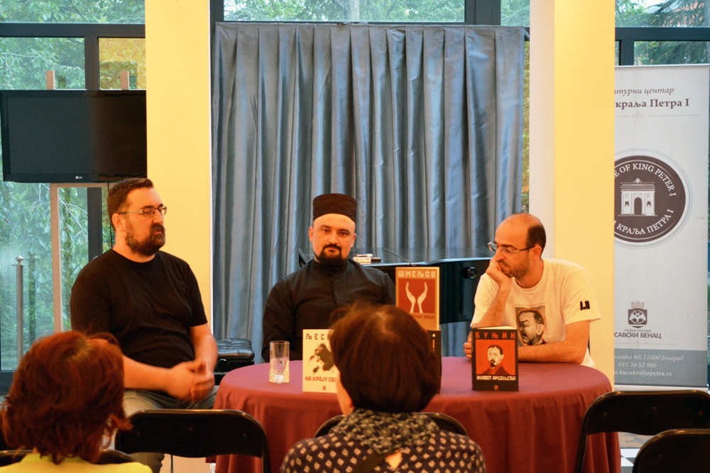 О русской литературе, значении русской эмиграции и культуры говорили директор издательства «Бернар» Никола Дробнякович, продюсер Бошко Милосавлевич и священник Далибор Стоядинович.