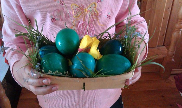 Например, можно по народному обычаю украсить березку атласными ленточками. Девочки могут сплести веночки из цветов и зеленых веток, развесить эти венки по дому. В некоторых русских губерниях на Троицу так же, как и на Пасху, красили яйца — но не в красный, а в зеленый цвет. Делалось это при помощи все тех же березовых листочков. Мы красим яички покупной зеленой краской[3].
