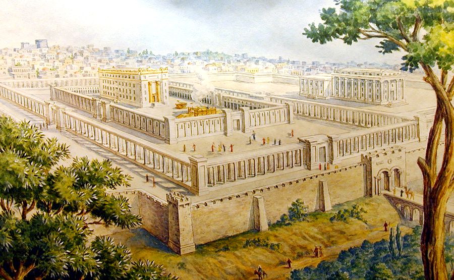 Фундамент потребовал гигантских работ. Достаточно сказать, что гора Мориа была поднята искусственным образом более чем на семьсот футов (около двухсот тридцати метров). Как и скинию, евреи называли храм Домом (Байт). Храм не был местом собрания верующего народа: он был исключительно жилищем Господа, недоступным для непосвященных. Простой израильтянин не мог в него войти. Этим символизировалось то, что Царство Небесное до искупительной Христовой жертвы было затворено для Израиля.
