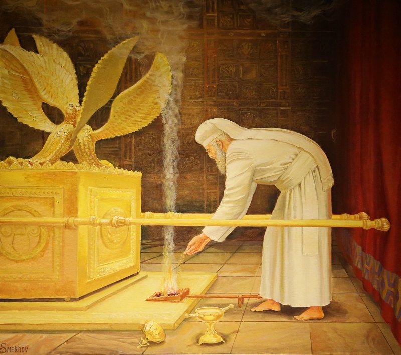 В святом стоял жертвенник, на котором возжигался фимиам, десять золотых семисвечников и десять столов. На одном из них находилось двенадцать хлебов предложения. В святое святых первосвященник мог входить только раз в год в день очищения. Здесь находился ковчег завета. О размахе строительных работ можно судить по тому, что восемьдесят тысяч хананеев были бессменно заняты высеканием и обтесыванием камней в горах, а семьдесят тысяч человек — доставкой.
