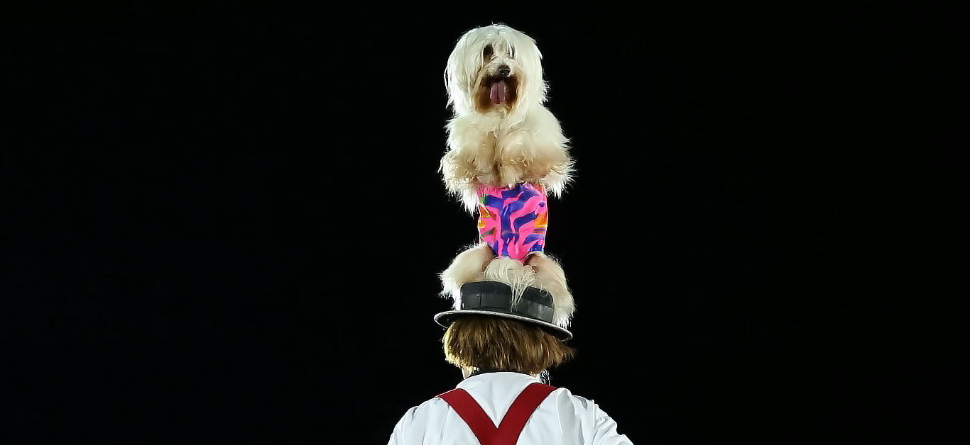 Или вот еще печальный номер из богатой коллекции Майхровского. На арену на задних лапах выходил небольшой пушистый пес, на нем был фрак с бантиком, цилиндр, в зубах — курительная трубка, за ним шел Май с трубой. Дойдя до микрофона, бликующего в световом луче, клоун начинал играть «Вальс погасших свечей», а «певец» трогательно и лирично выл. Под куполом воцарялась грусть. Вот и весь номер. За границей залы вставали и сотрясали цирк аплодисментами, у нас — часто была тишина. Никто не понимал. Что-то совсем невеселое — увидеть такое в цирке люди были совсем не приучены.