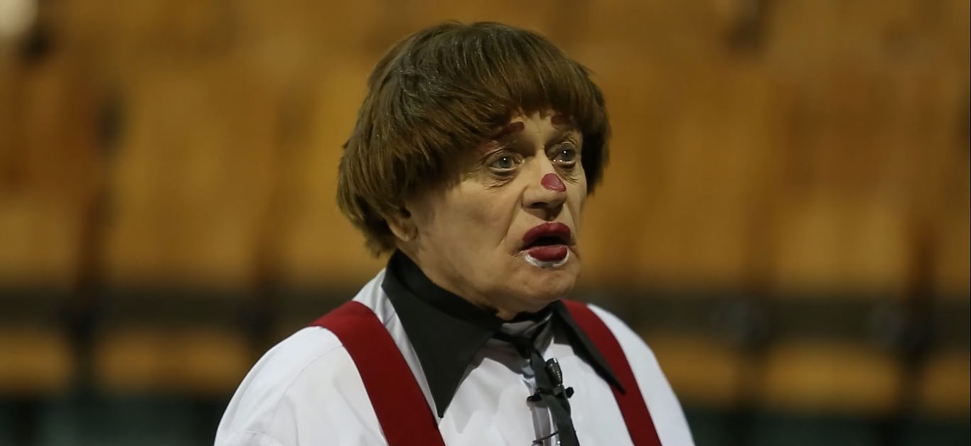 Это клоун-рыбак: он закидывает невидимые крючки грусти и радости в зрительские души