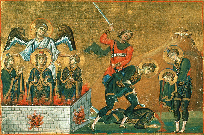 В книге Пророка Даниила рассказывается об изумительном молитвенном подвиге трех отроков — Анании, Азарии и Мисаила. Они отказались поклониться золотому истукану и с великим упованием вознесли молитву Богу. По приказу разгневанного царя они были брошены в раскаленную печь. Но Ангел Господень сошел в печь, и огонь не повредил им. Тогда три благочестивых отрока прославили Бога: Благословен Ты, Господи Боже отцов наших, и хвальный и превозносимый вовеки, и благословенно имя славы Твоей, святое и прехвальное и превозносимое вовеки (Дан 3, 52).
