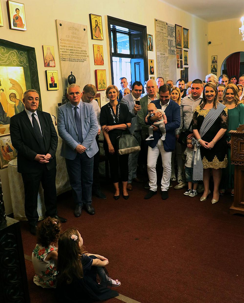 Учешће у Литургији је узео велики број верника, а међу свечаним званицама био је и др Милета Радојевић, директор Управе за сарадњу са црквама и верским заједницама. Патријарх је произнео празнично слово које можете преслушати на интернет презентацији Радија Слово љубве. Његова Светост Патријарх одликовао је, овом приликом, др Јоани Батсиалоу орденом Светог Саве, док су орден Светог краља Милутина добили господа Саша Жигић, Ратко Мушикић и Игор Поповић.