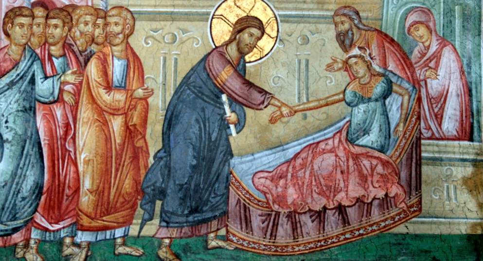 Имея власть над жизнью и смертью, Иисус Христос совершал и чудеса воскрешения. Один из начальников синагоги, по имени Иаир, умолял Иисуса пойти с ним и исцелить его дочку, находящуюся при смерти. Господь пошел с ним, но по дороге слуги Иаира известили отца о случившемся горе: «Твоя дочь уже умерла, зачем беспокоить Учителя?» Но Господь, услышав это, тотчас сказал начальнику синагоги: «Не бойся, только веруй». Господь, придя в дом, где уже все готовились к погребению девочки, выслав вон всех, кроме родителей и трех Своих ближайших учеников — Петра и братьев Зеведеевых, Иакова с Иоанном, — взял девочку за руку и сказал: «Девица, тебе говорю, встань». И девочка тотчас вернулась к жизни (см.: Мф 8, 19–26; Мк 5, 21–43; 8, 40–56).