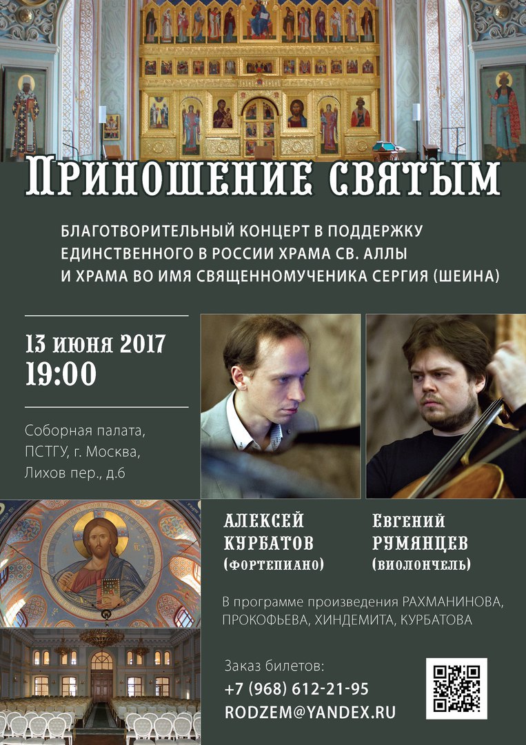 Во вторник, 13 июня 2017 года, в Соборной палате Московского епархиального дома (Лихов переулок, д. 6) пройдет концерт «Приношение святым».