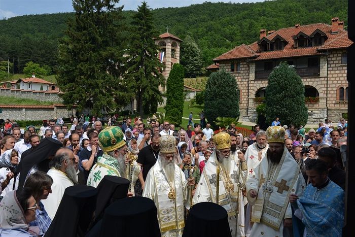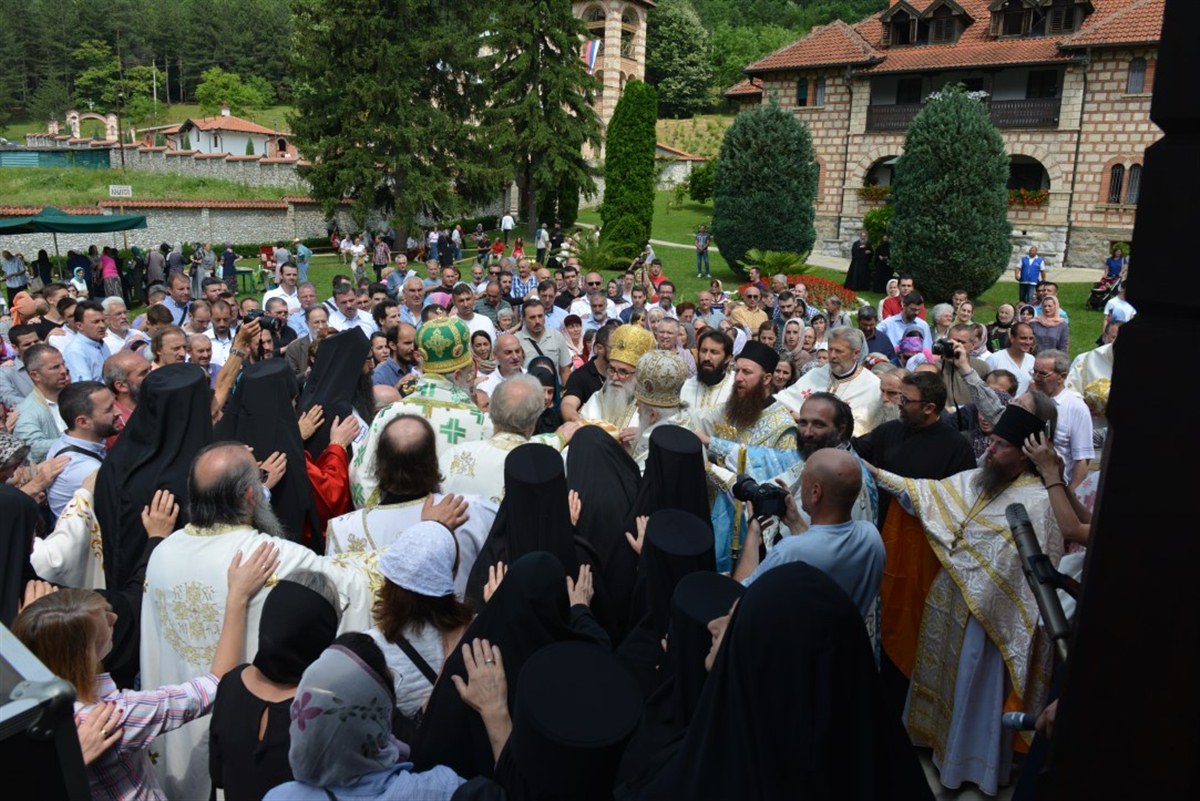• Отац Јустин знао је да онај ко понесе Часни крст, тај ће добити силу и светлост Васкрсења Христовог. Ево, старац наш Отац Јустин доживео је своје васкрсење. Кроз њега и преко молитава ћелијских сестара уграђених у ову светињу, васкрсавамо и ми, сабирајући се на овом светом месту, у овој светој гори. И ми васкрсавамо, надахњујући се и васпитавајући се силом Божјом и примером светих Божјих људи, који су освештали простор средишне Србије… Овде су засијале мошти Светог Владике Николаја и Оца Јустина, два чудесна светила. То је оно што је овај народ изнедрио! У овим распамећеним и безбожним временима, Бог је послао нама своје нове апостоле, а преко нас и читавој Европи и свету – истакао је Митрополит Амфилохије.