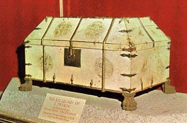 В 1177 году священник по имени Мартин выкрал мощи Петрока и перенес их в аббатство Сен-Меан в Бретани. Епископ Эксетера немедленно доложил о краже королю Генриху II. Благодаря вмешательству монарха мощи торжественно вернули в Бодмин, хотя одно ребро святого осталось в Бретани. Известно, что в конце XII века Уолтер Кутанский, будущий архиепископ Руана (Франция), пожертвовал Бодмину красивую, великолепную раку сицилийской работы – из слоновой кости, золота и меди – для хранения мощей святого Петрока. Во время Реформации мощи угодника исчезли (возможно, их спрятали в безопасном месте), а рака была на время утеряна. Но в XIX веке эта уникальная святыня была найдена целой и невредимой рядом с церковью Бодмина и с тех пор находится внутри нее как великий символ Корнуолла. Примечательно, что этот ценный реликварий был снова утерян – в 1994 году, – на этот раз его украл вандал. В связи с инцидентом верующих Корнуолла призвали молиться, о произошедшем сообщили Ее Величеству королеве, и благодаря оперативной работе полиции святыню обнаружили в целости и сохранности на одном из полей Йоркшира на севере Англии – практически в противоположном конце страны! Раку можно увидеть у южной стены нефа. Ценители называют ее одним из великолепнейших сохранившихся средневековых реликвариев Британии. В церкви также выделяется норманнская купель с высеченными на ней ангелами, побеждающими силы зла.