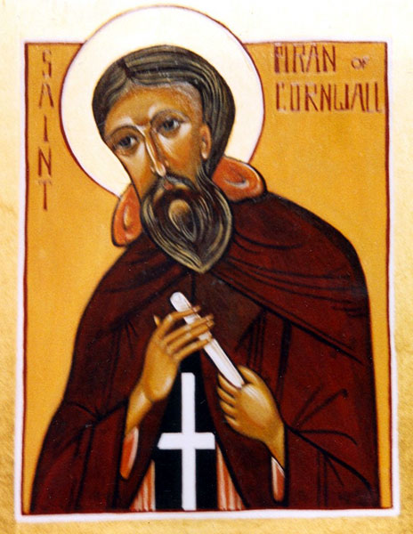 На протяжении полутора тысячелетий святой Пиран (также Перран) почитается как покровитель корнуоллских углекопов, рудокопов, особенно добытчиков олова, а также один из небесных покровителей всей области. Это один из величайших святых Корнуолла и, возможно, один из самых ранних. Во многих календарях его преставление датируется 480-м г. Согласно наиболее популярной версии, будущий святой родился в Ирландии (согласно другой версии, его родиной был Гламорган в Уэльсе). Предание рассказывает красивую историю о том, как Пиран очутился в Корнуолле. Ирландский язычник, ненавидевший молодого подвижника Пирана за его христианскую веру, привязал к нему мельничный жернов и сбросил со скалы в бушующее море, которое в тот же момент стало спокойным. Поддерживаемый чудесной силой, Пиран «поплыл» на камне, как на плоту, и в конце концов добрался до северного берега Корнуолла целым и невредимым. Угодник принял это как знак Божий, что ему следует остаться на корнуоллской земле и привести как можно больше местных жителей к истинной вере и познанию Бога. Это предание можно понимать духовно.