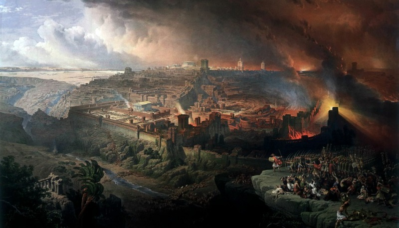 Прошло несколько десятилетий после этой беседы Спасителя со Своими учениками, и в 70 году, после восстания иудеев и кровопролитной войны, Иерусалим был взят римскими войсками, и храм был стерт с лица земли. Так исполнились пророческие слова Спасителя о том, что на том месте не останется камня на камне. Разрушение Иерусалима и храма было страшным испытанием для всех иудеев.