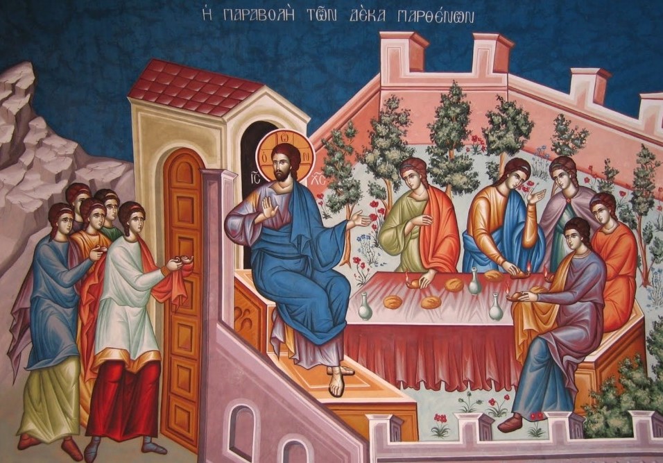«Небесное Царство будет подобно десяти девам, участвующим в свадебной процессии. С зажженными светильниками они должны были встречать жениха. Пять из них были мудрыми, а другие пять неразумными. Неразумные девы взяли светильники, но не взяли для них масла, а умные вместе со светильниками взяли и масло в кувшинах. Жених задержался, и они все заснули. Около полуночи раздался крик: “Жених идет! Выходите встречать его!” Девы проснулись и поправили свои светильники. Глупые стали просить мудрых: “Дайте нам вашего масла, потому что светильники наши гаснут”. “Нет, — ответили те, — если мы поделимся с вами маслом, то не хватит ни вам, ни нам. Пойдите лучше к торговцам и купите себе”. Когда же глупые девы пошли покупать, пришел жених, и готовые вошли с ним на брачный пир, и двери затворились. Позже вернулись и остальные девы и стали просить: “Господи! Господи! Открой нам!” Но жених ответил: “Истину говорю вам: я не знаю вас”». Елей, который каждый человек должен приготовить к приходу Спасителя, — это добрые дела. Без этого елея — добрых дел — человек навечно останется во мраке греха и лишит себя радости общения со Своим Господом.