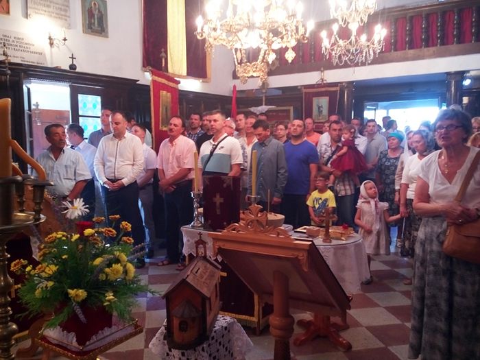 Сабрани вјерници, који су се припремали постом, молитвом, исповјешћу - примили су свето причешће. Након свете тајне причешћа којој се присајединио велики број вјерног народа, обношена је литија око Храма и пресјечен славски колач.
