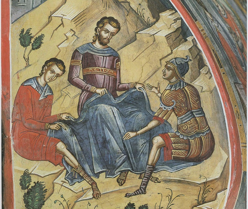 Один из распятых разбойников обратился к своему товарищу, продолжавшему проклинать Иисуса Христа: или ты не боишься Бога, когда и сам осужден на то же? и мы осуждены справедливо, потому что достойное по делам нашим приняли, а Он ничего худого не сделал. Быть может, сердце разбойника тронула кротость Иисуса и Его забота о Матери. Повернувшись к Нему, разбойник сказал: помяни меня, Господи, когда приидешь в Царствие Твое! И Господь ответил: ныне же будешь со Мною в раю.